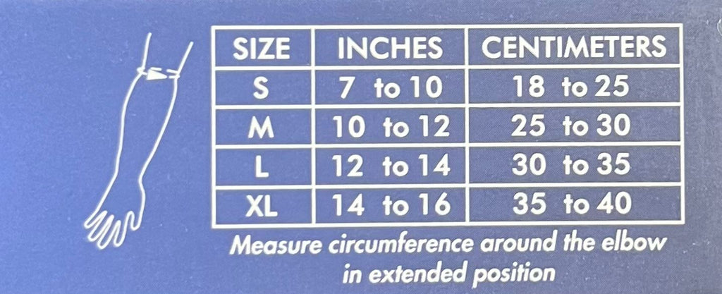 measure the circumference around the elbow in an extended position and refer to the size guide below
